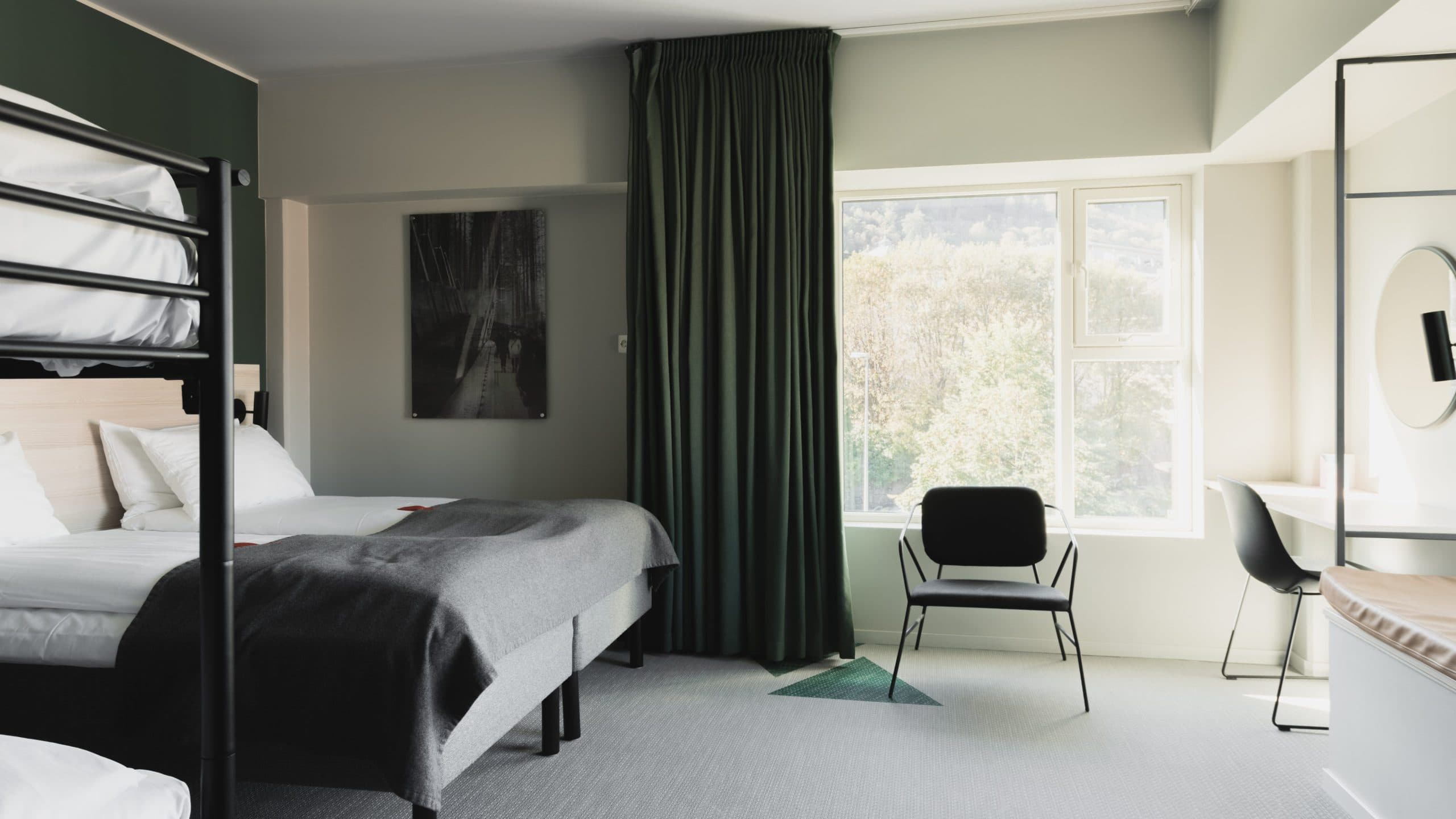 Standaard familiekamer met een tweepersoonsbed, stapelbed en...